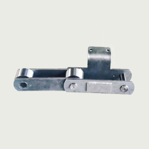 平板輸送機的鏈條,由帶K型附件的滾子套筒鏈和方管鋼組成,該鏈條在負載運行時,滾子和鏈條導(dǎo)軌之間是滾動兼滑動的摩擦運動形式。